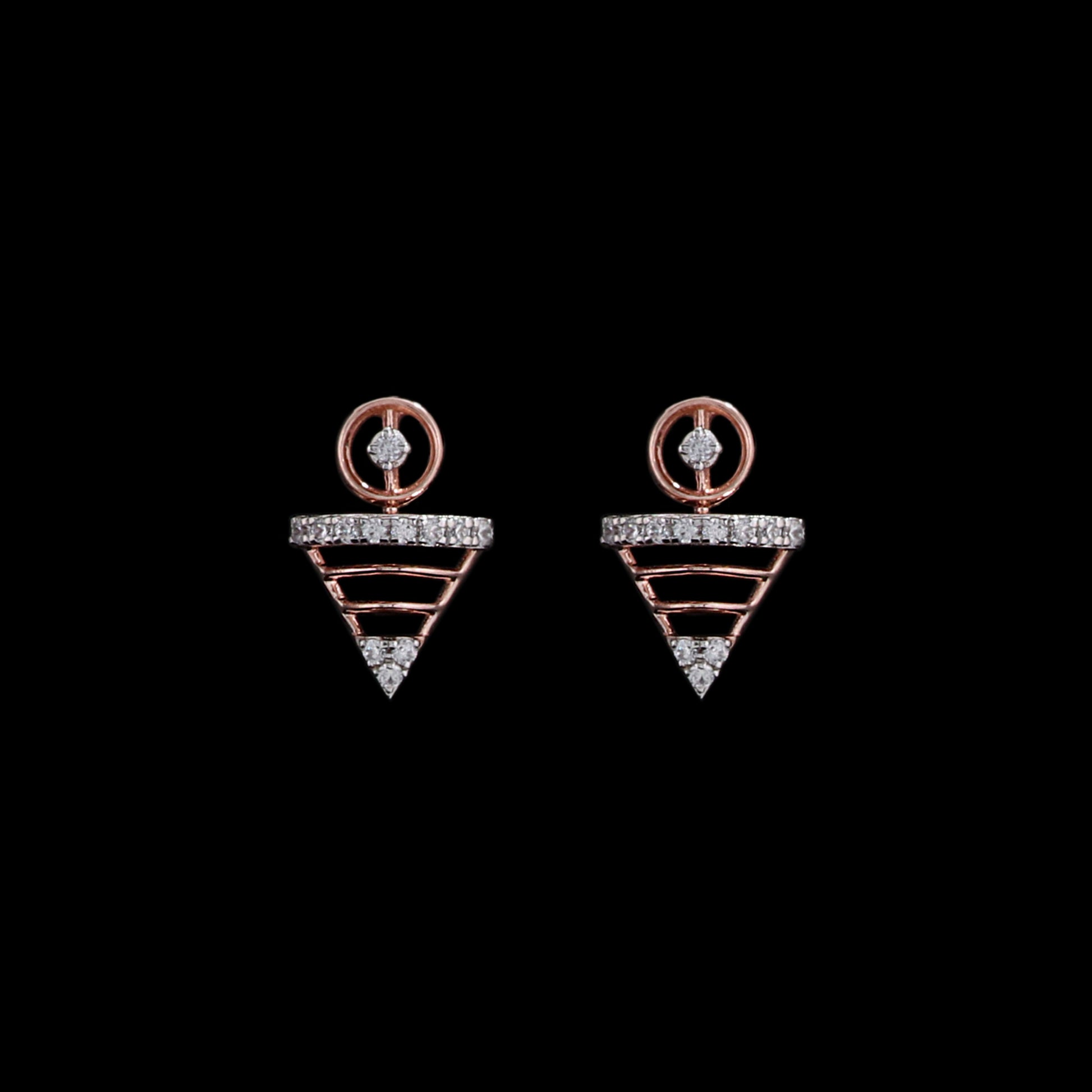 These elegant triangular earrings are designed to showcase a blend of modern aesthetics and timeless elegance. Crafted in lustrous rose gold, they feature a unique geometric shape that adds a contemporary touch to your jewelry collection. The clean lines and the triangular silhouette create a striking visual appeal that makes them suitable for both casual and formal occasions.